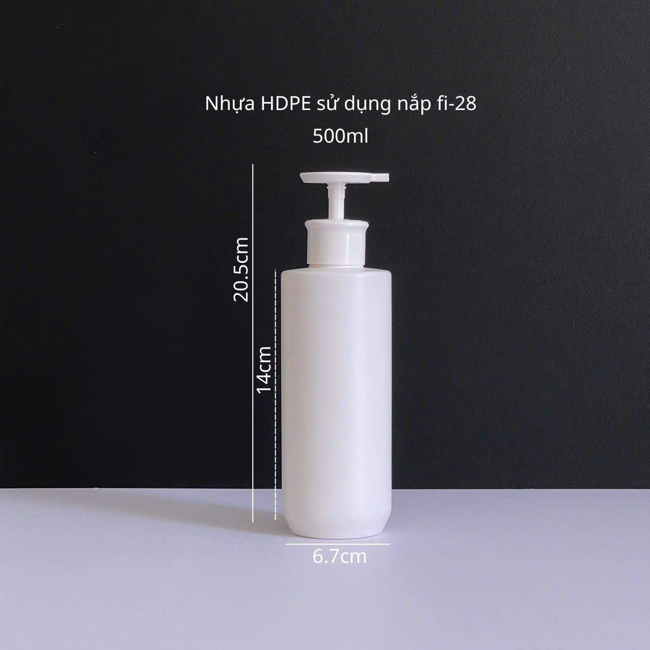 Thông tin chi tiết về Chai HDPE trắng vai ngang vòi nhấn dẹp trắng 500ml