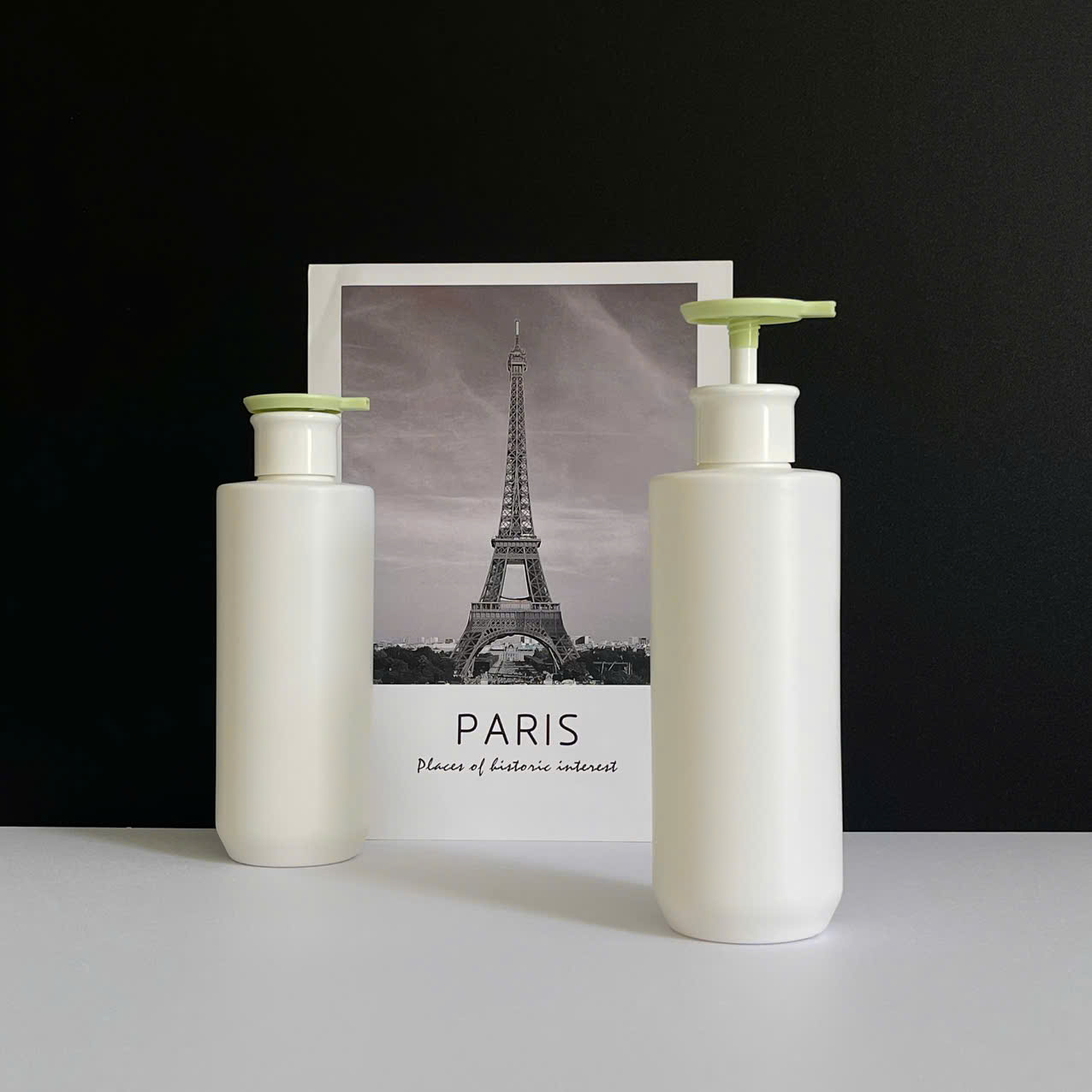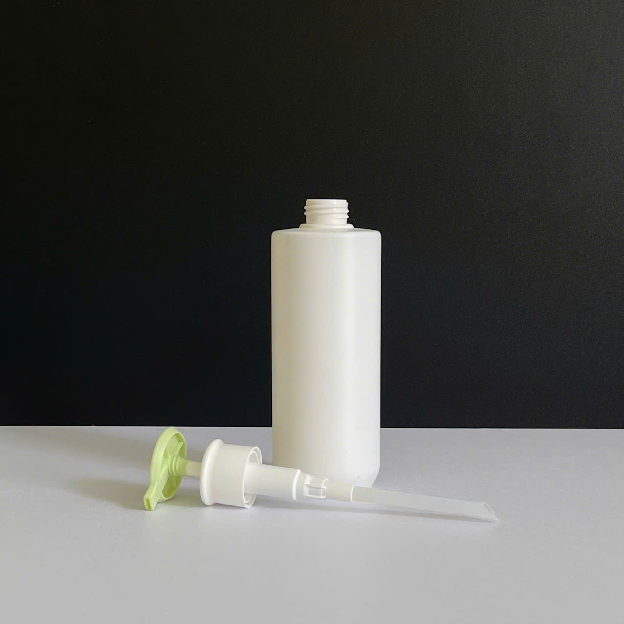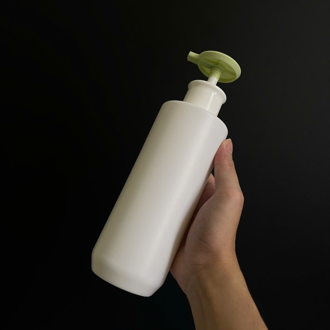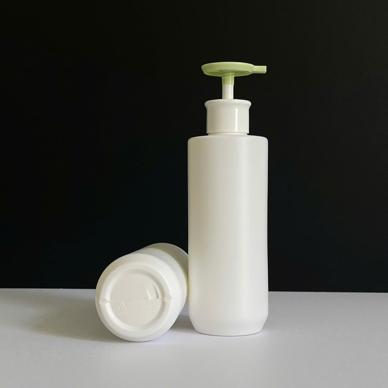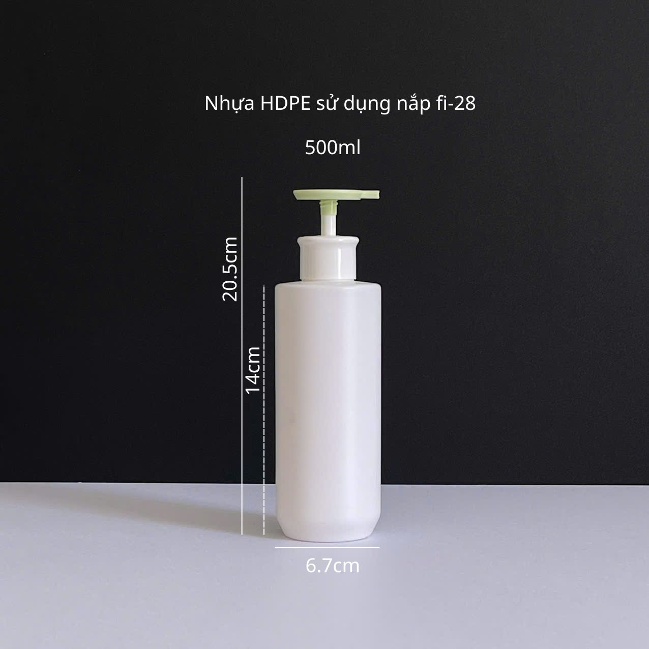 Chai HDPE trắng vai ngang dung tích 500ml kết hợp vòi nhấn dẹp xanh tạo điểm nhấn trẻ trung – phù hợp cho các sản phẩm như dầu gội, sữa tắm, dung dịch vệ sinh, nước rửa tay. Thiết kế thân trắng nhám giúp dễ dàng in ấn hoặc dán nhãn thương hiệu.