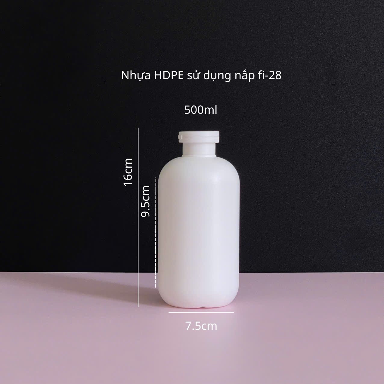 Chai HDPE tròn trắng nắp bật trắng 500ml là mẫu chai nhựa phổ biến trong lĩnh vực mỹ phẩm và chăm sóc cá nhân. Thiết kế đơn giản nhưng tinh tế, dễ dàng phối hợp tem nhãn, mang đến vẻ ngoài chuyên nghiệp và sạch sẽ cho sản phẩm.