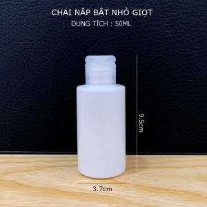 Chai nắp bật nhỏ giọt được thiết kế với tông màu trắng dễ dàng cho bạn phối màu tem nhãn cho nhãn hiệu riêng của mình. Với kích thước chiều cao 9.5cm x đường kính 3.7cm và dung tích 50ml, sản phẩm phù hợp với nhiều mục đích sử dụng, từ chứa mỹ phẩm, nước hoa, dầu gội đến các sản phẩm khác.