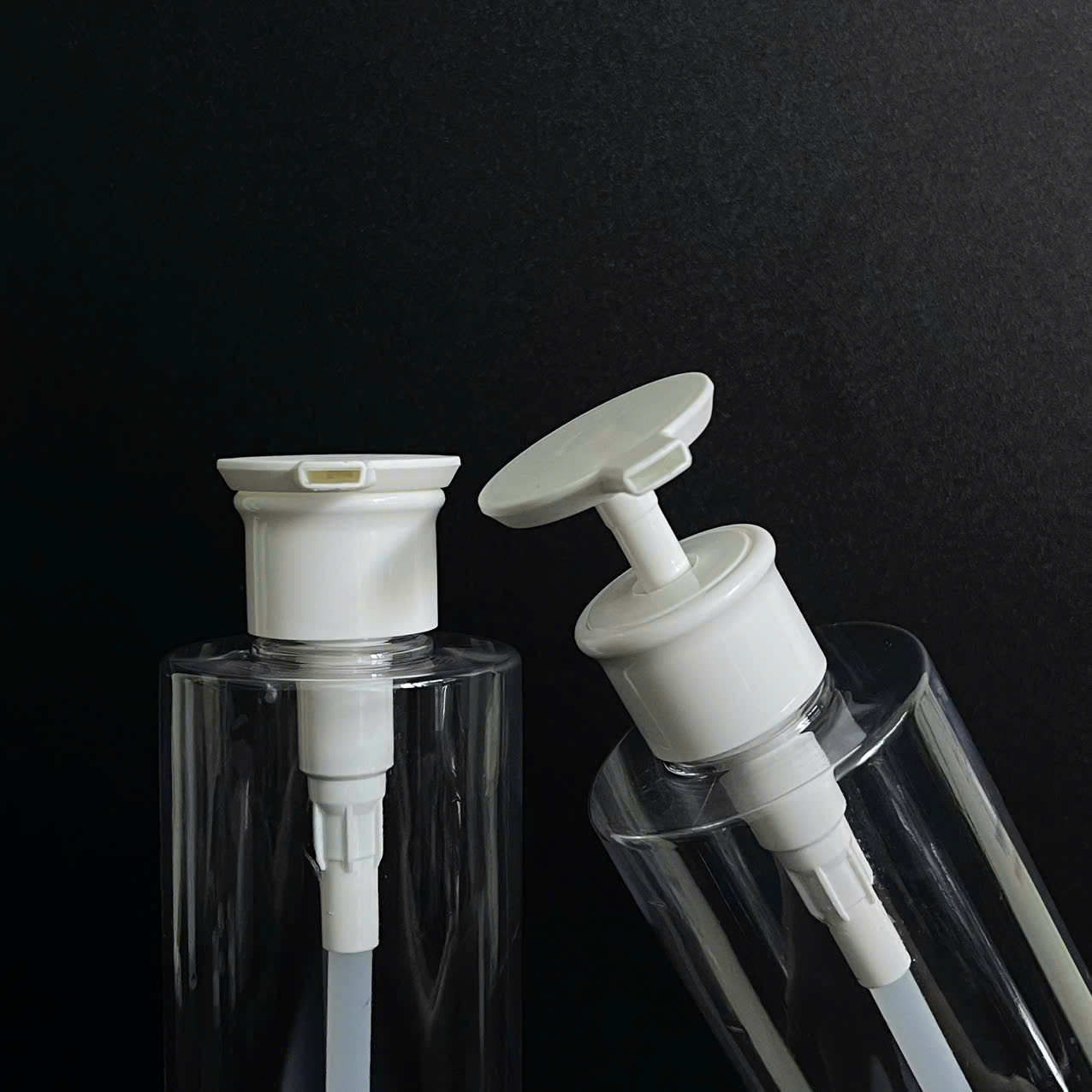 Nắp: Vòi nhấn dẹp – thao tác êm, không văng đổ dung dịch