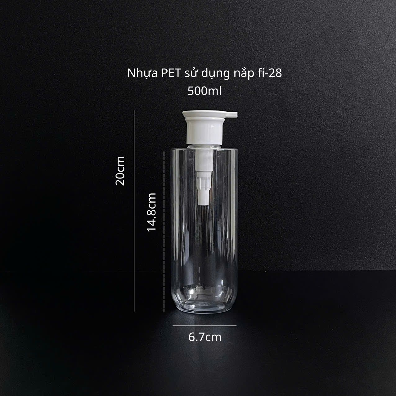 Thông tin chi tiết về Chai PET vai ngang trong suốt vòi nhấn trắng 500ml